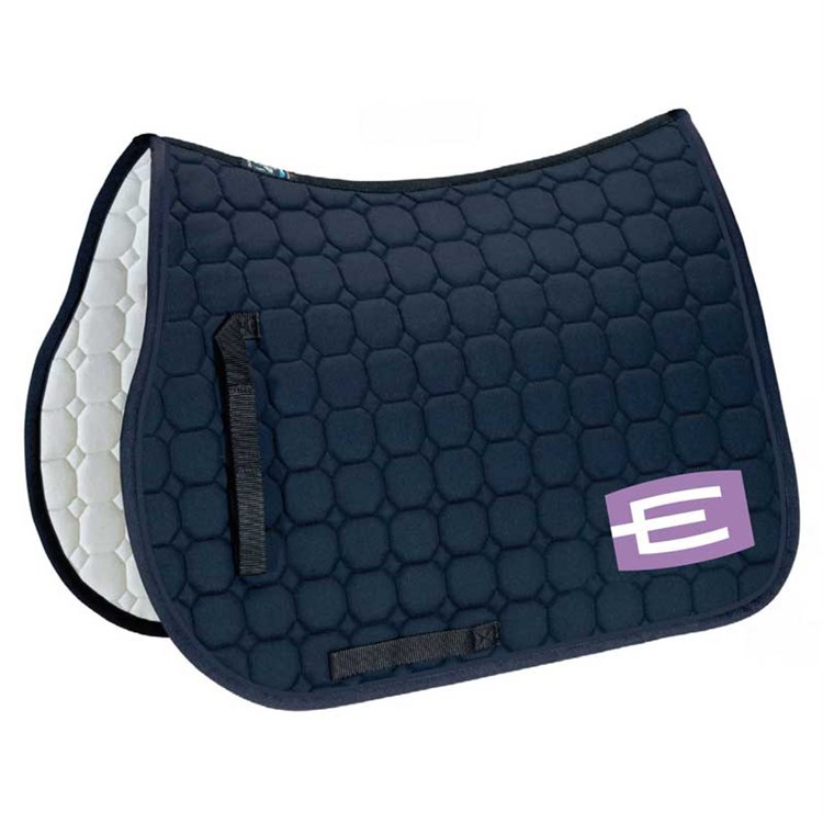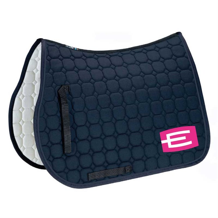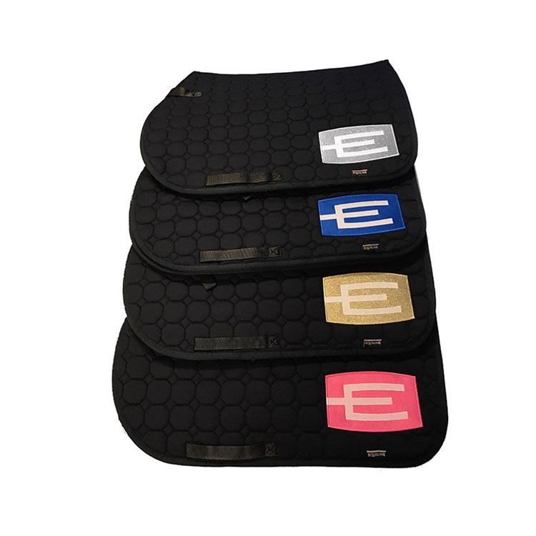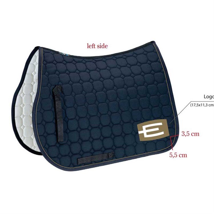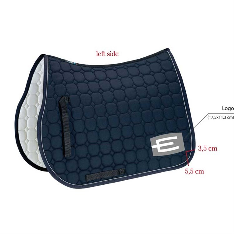 Från shopHoppschabrak i storlek full med den populära E-loggan på vänster sida (finns även i ponny). Loggan går att få i flera olika färger! Självklart kan man välja till passpoaler, kristaller och kantband, precis som på de vanliga Equiline-schabraken.