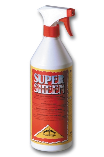 Från shopSuper Sheen gör hästens svans och man mjukt, glänsande, silkeslent och trasselfritt. Sprayen lägger sig som en skyddande hinna över pälsen och är både smuts- och vattenavstötande. Inget behov av att tvätta före användning eller skölja efter. 5 liter.