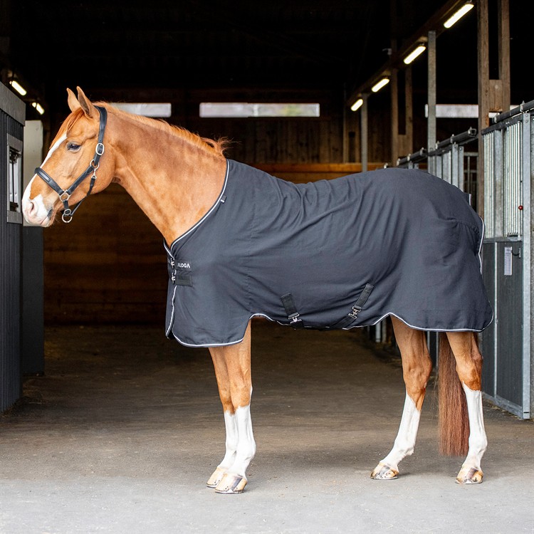 Från shopMångsidig både i namn och funktion, Aloga Versatile Sheet kan användas både som stalltäcke och cooler beroende på hästens behov. Tillverkad i borstad ringspunnen polyester, transporterar tyget effektivt bort fukt från hästens päls samtidigt som det är helt andningsbart. Perfekt som stalltäcke under varma dagar.