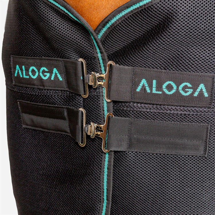 Från shopAloga Pro Mesh Cooler är designad för användning under varma väderförhållanden. Detta högandningsbara cooler-täcke är tillverkat i 3D-airmesh som gör att kroppsvärmen lätt kan avdunsta genom tyget samtidigt som det ger god luftcirkulation medan hästen bär täcket. Utvecklat i samarbete med Alogas sponsorryttare, kan detta täcke användas vid resor, efter dusch eller efter träning. Bogpartiet är fodrat med Aloga-embossat foder för att minska risken för skav och bibehålla pälsens kondition och glans.